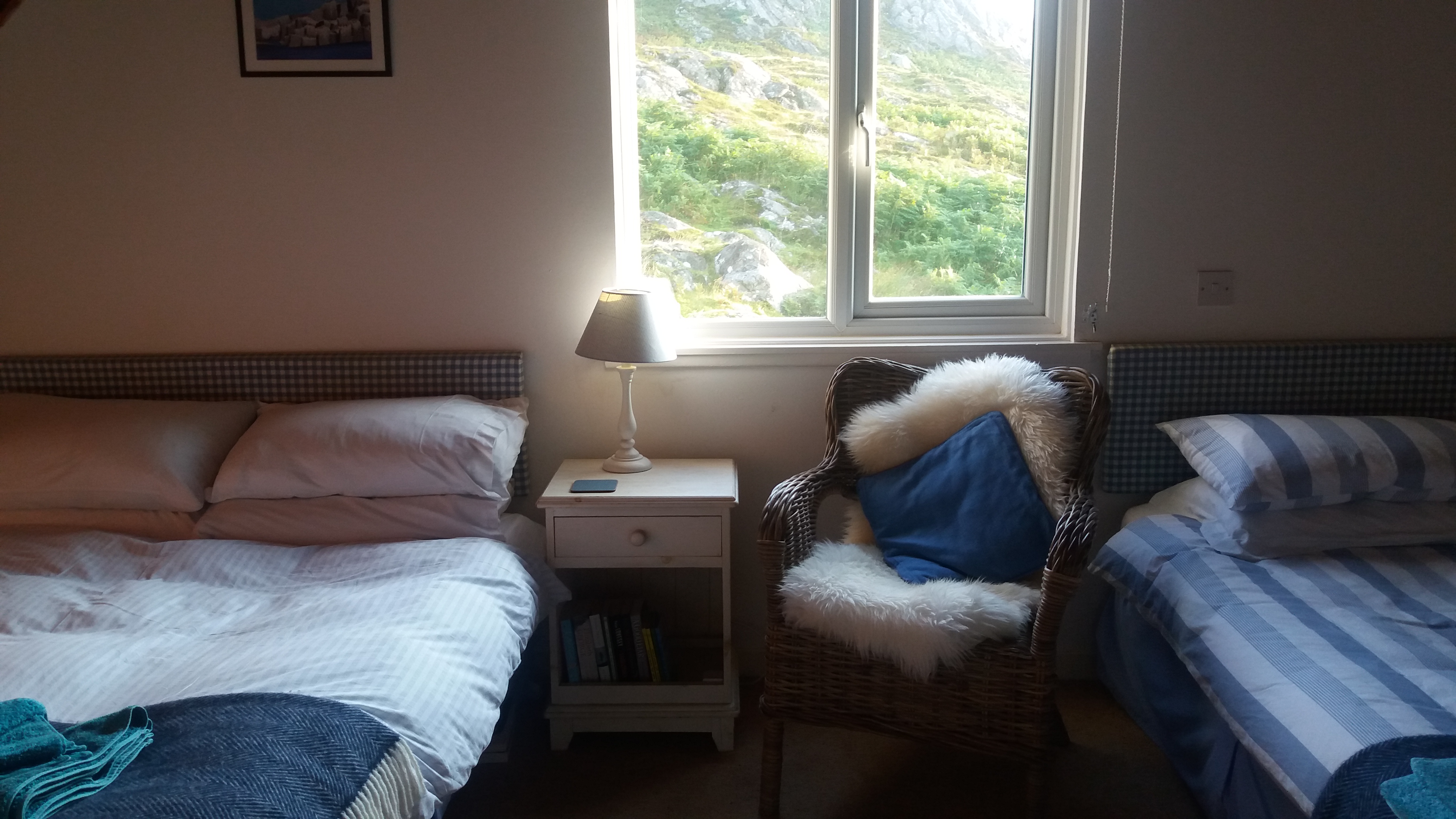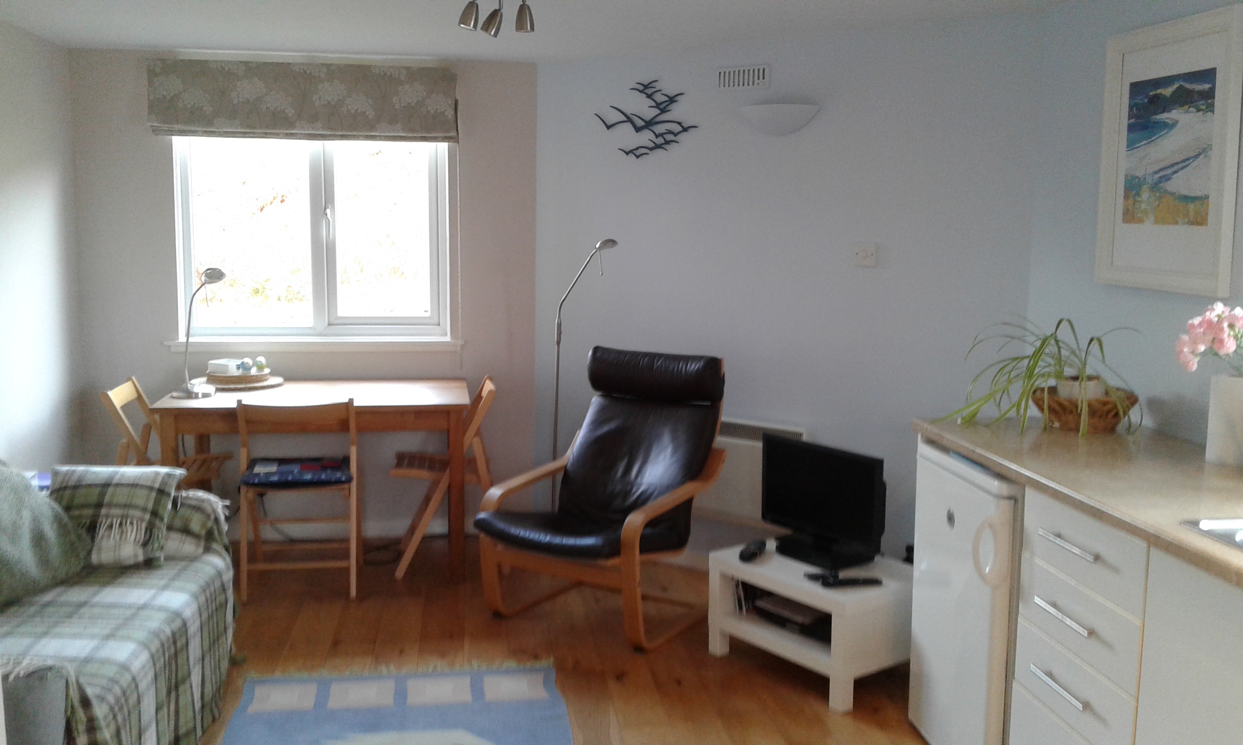 Phoebe is a stylish chalet-type lodge accommodating 1,2 or 3 people, with access up 11 outdoor steps. It is situated 600m from the CalMac ferry pier and close to the hotel, which is open to non-residents for drinks and meals. All the amenities of Scalasaig, Colonsay's main village, including the island store, post office, café/restaurant, distillery, smokery, craft shops, surgery, church, children's playground and village hall with service point are within walking distance. There is no need to bring a car and Phoebe Lodge makes an ideal base for walking and cycling to explore this peaceful island with near-deserted pristine beaches and wonderful wildlife. Bag a few 'MacPhies' (Colonsay's 22 'Munros' over 300ft), visit the small heritage centre and the sub-tropical gardens and tearoom at Colonsay House, maybe enjoy loch fishing or a round of golf, explore the many archaeological sites - or add a few stones to the communal whale sculpture. A visit to Colonsay's neighbouring island of Oronsay makes a fascinating day, with the crossing over the sands possible at low tide to enjoy the nature reserve and well-preserved mediaeval priory. Throughout the year festivals and other social events are held on Colonsay to get everyone together.